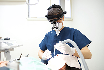 患者様ごとに手袋を交換するだけでなく、同じ患者様の治療中にも何度も手を洗います。使い捨てや完全に清潔に管理された器具しか使わず、治療器具の洗浄においても、メーカーに依頼して特注の超音波洗浄機を導入し、治療に使う空気まで清潔を求めるなど、衛生面においても安心して治療を受けて頂けます。