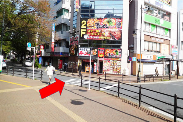 JR中央線三鷹駅改札を右に出ます。右に曲がったすぐの階段を下りて下さい。