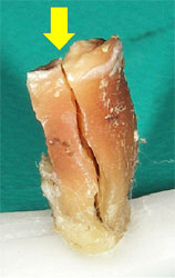 こうした原因により歯が真っ二つに割れ抜歯を余儀なくされたケースを何度も目にしています。